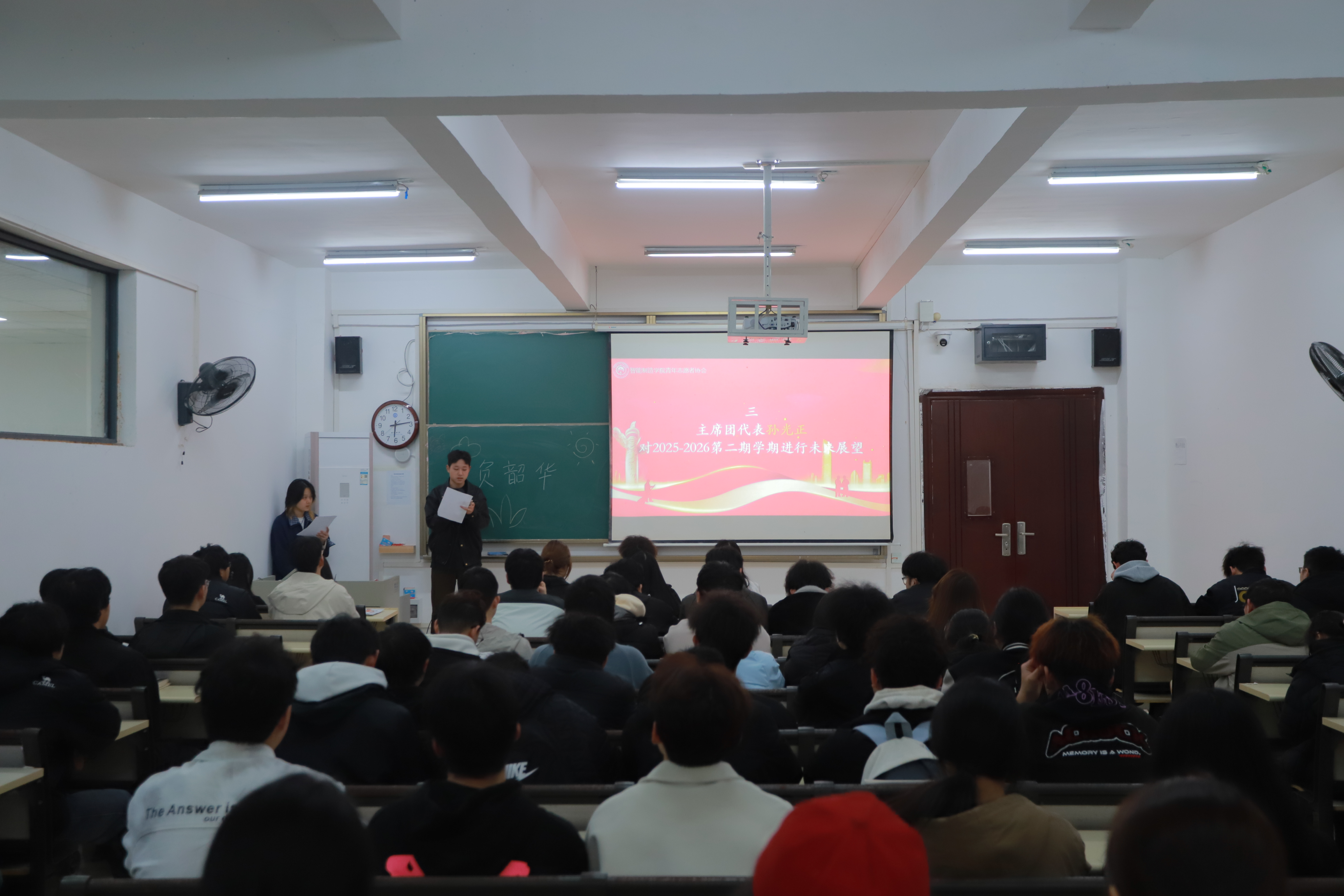 轮值主席孙光正围绕本学期后续工作进行安排部署,勉励全体志愿者以此次大会为契机,继续弘扬 “奉献、友爱、互助、进步” 的志愿精神,进一步强化责任担当与团队协作意识,以实际行动践行初心使命。