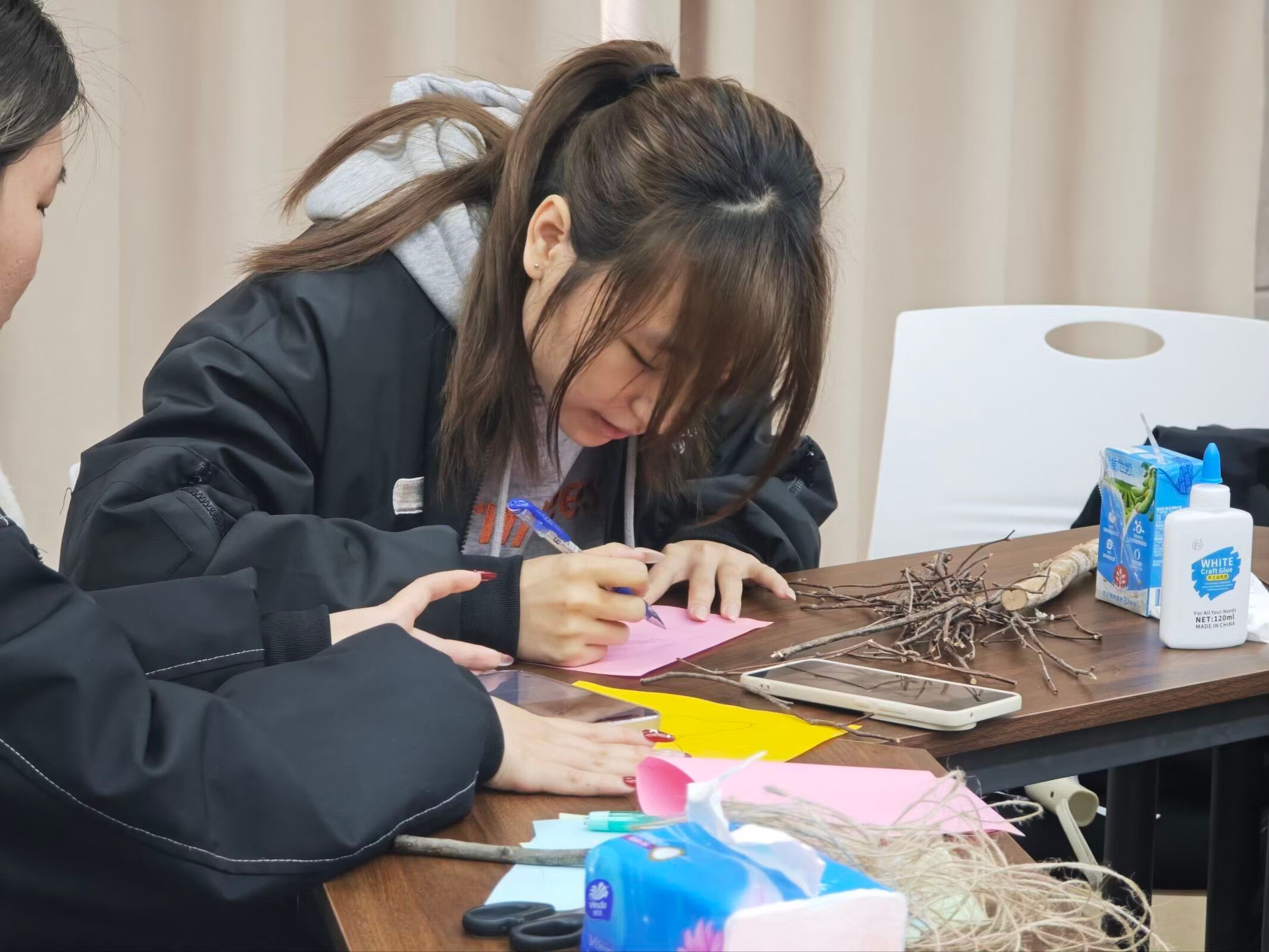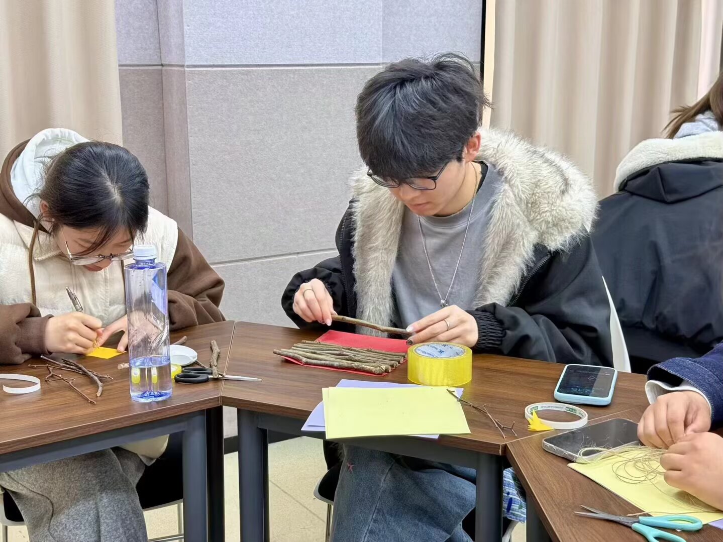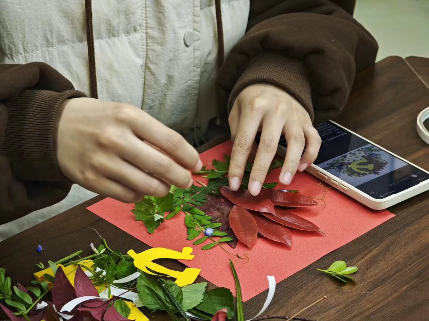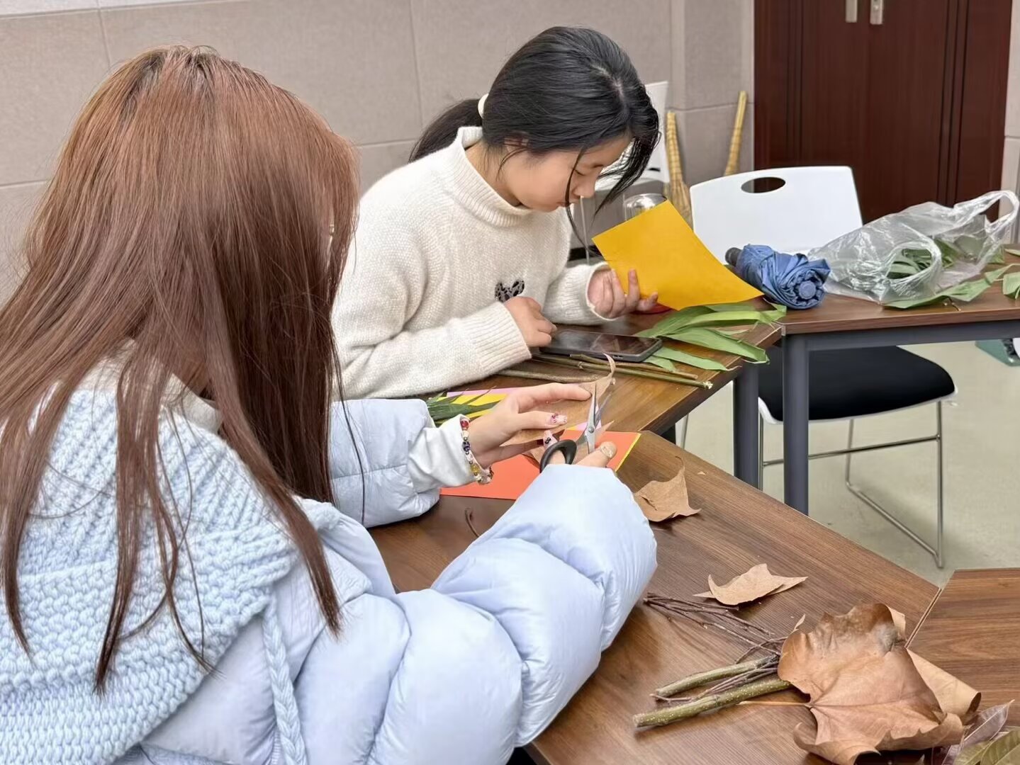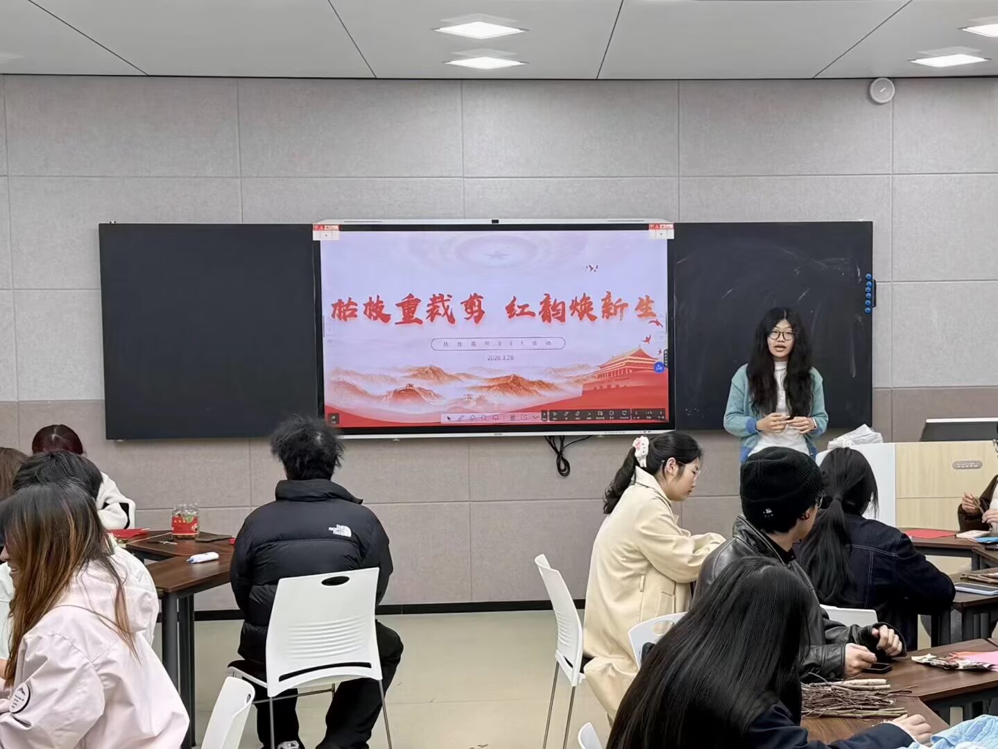 本网讯(通讯员 翁柳 狄泽荣 摄影 李瑞滢 黄欣莹)为弘扬红色文化、践行低碳环保理念,3月26日12:00,智能制造学院青马工程实践服务中心于16号楼318教室举办“枯枝重剪裁,红韵焕新生”枯枝落叶红色文创DIY活动。本次活动由刘美希主持,青马中心成员积极参与。