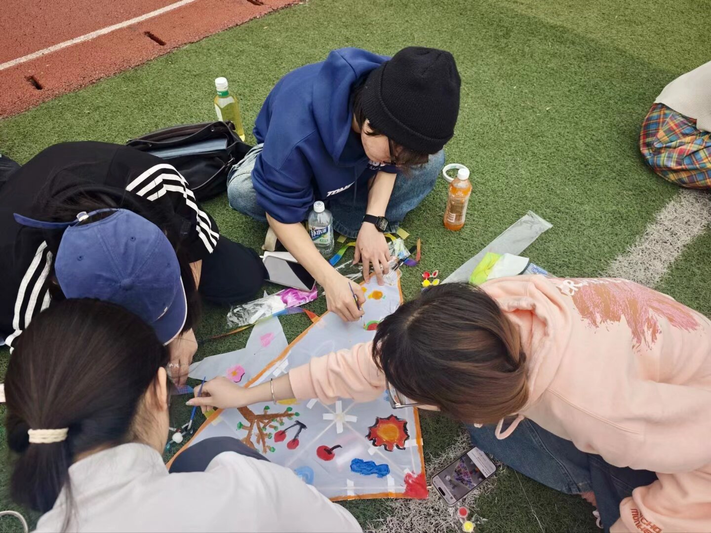 活动现场,同学们以小组为单位默契配合、齐心协力,从绑扎风筝骨架、创意手绘图案到细心粘贴固定,每一道工序都一丝不苟。大家相互探讨、互帮互助,在亲手实践中沉浸式体验传统手工艺的魅力。风筝制作完毕后,同学们移步操场开阔地进行放飞,大家手握线轴奔跑,尽情感受春日放飞风筝的乐趣,尽显青春昂扬、朝气蓬勃的学子风采。