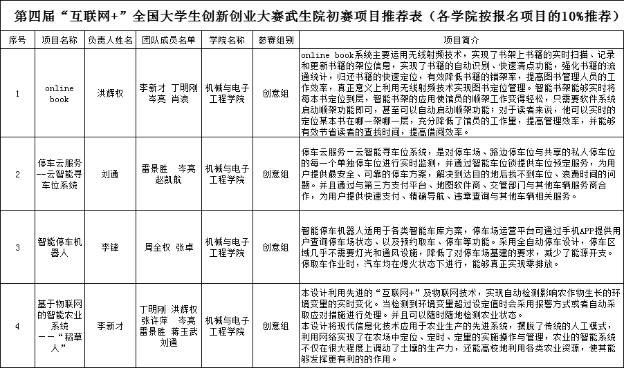 第四届“互联网+”全国大学生创新创业大赛武生院初赛推荐项目