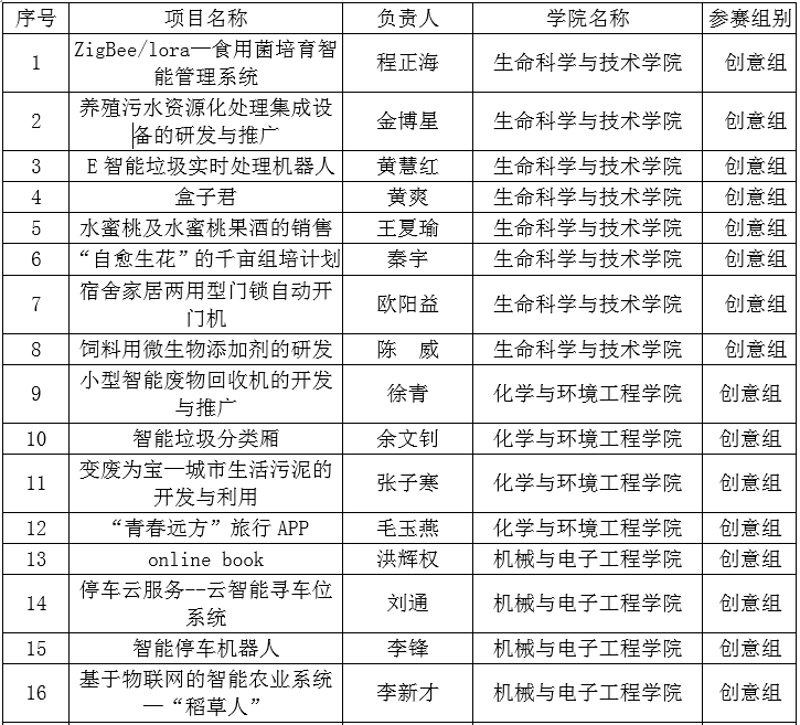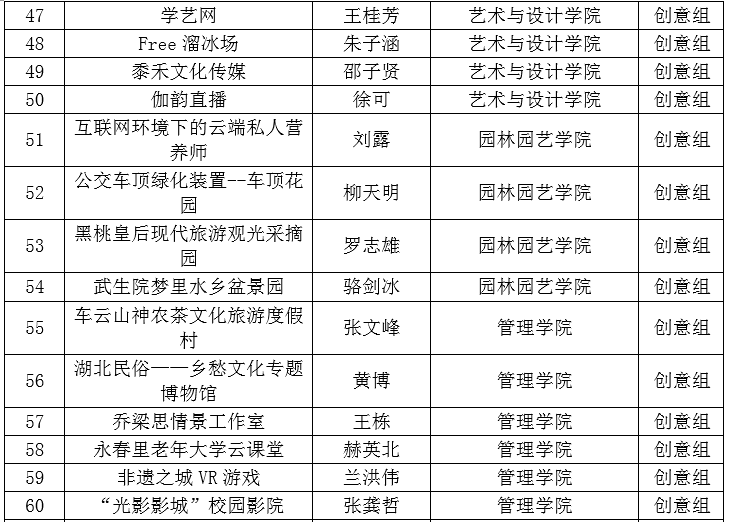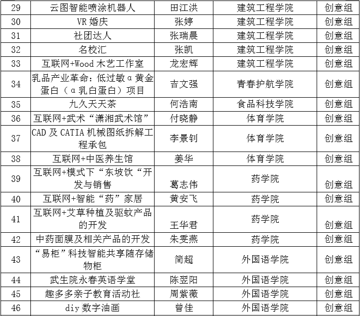 第四届中国“互联网+”大学生创新创业大赛武生院初赛入围通讯评审项目名单