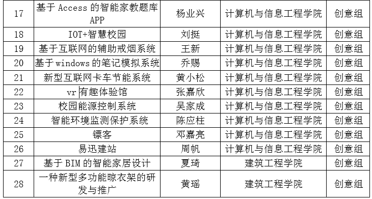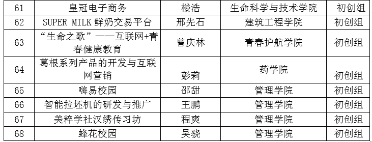 附件:第四届中国“互联网+”大学生创新创业大赛武生院初赛入围通讯评审项目名单