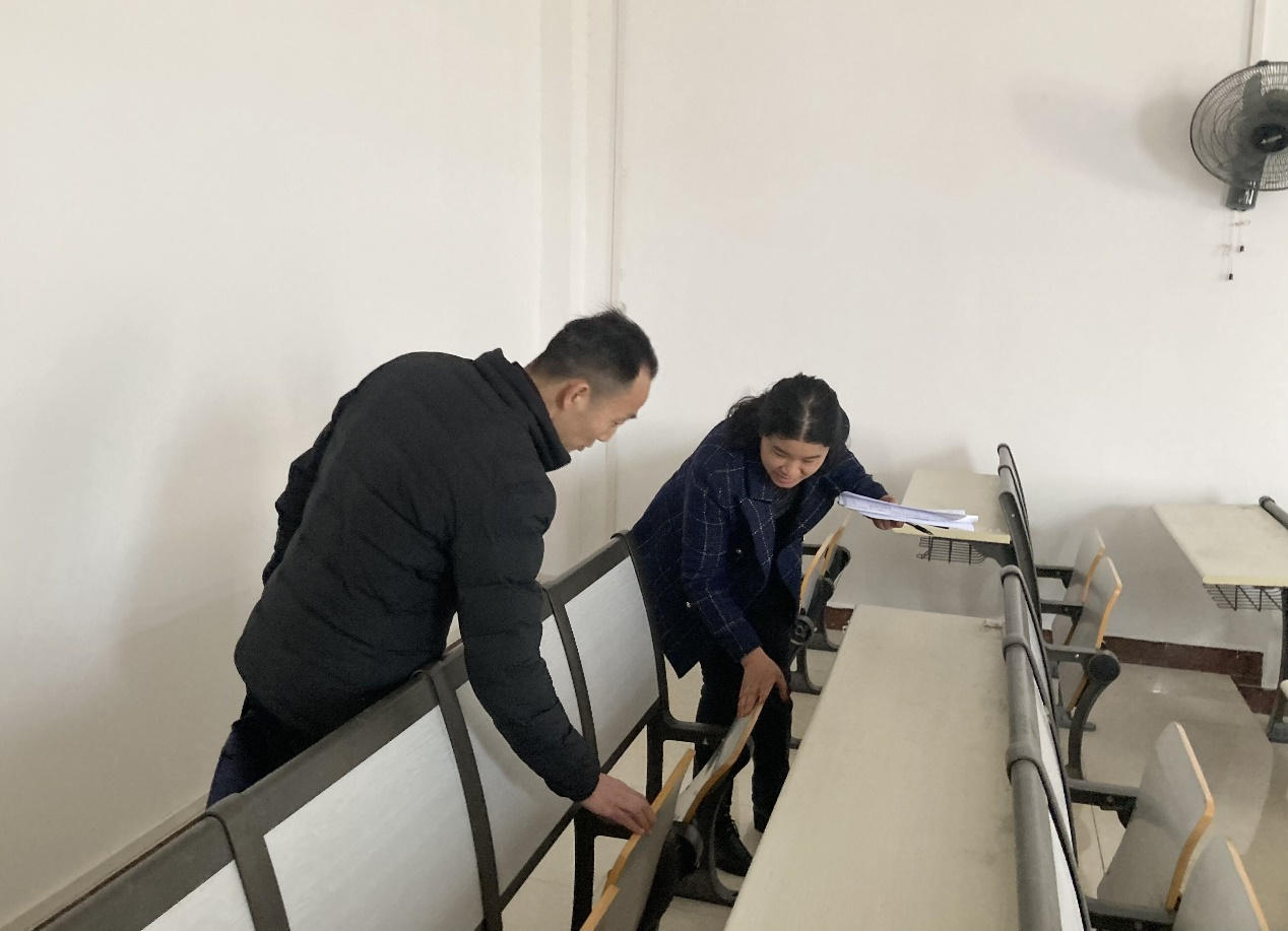 孔书记就创新教学方法、加强课堂互动等方面与任课教师进行了沟通交流,鼓励教师不断提高课堂教学质量。紧接着,孔书记带领机电·软件学院党政班子成员在16号教学楼对教学设施进行了逐一排查,实地查看了教室课桌椅、墙面、地板砖、天花板和多媒体等教学设施的相关问题,并做了详细记录。