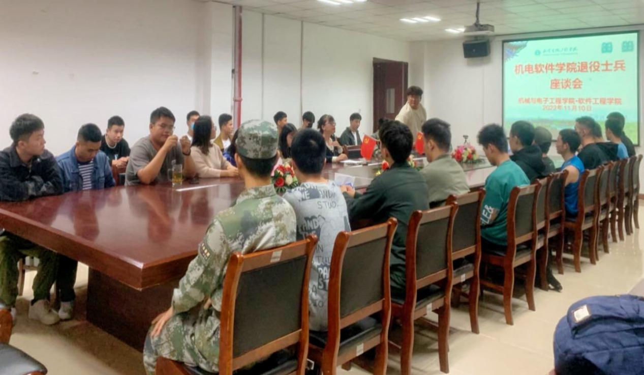 本网讯(通讯员 孙馨雨 周学渊 摄影周小林 胡博)为增强退役军人的荣誉感、归属感和幸福感,坚定理想信念,树立崇高理想。11月10日下午,机械与电子工程学院·软件工程学院在机电大楼207会议室举行学院退役士兵座谈会,出席本次座谈会的有学院党总支副书记周婉婷、学院新生辅导员、学院退役复学大学生。