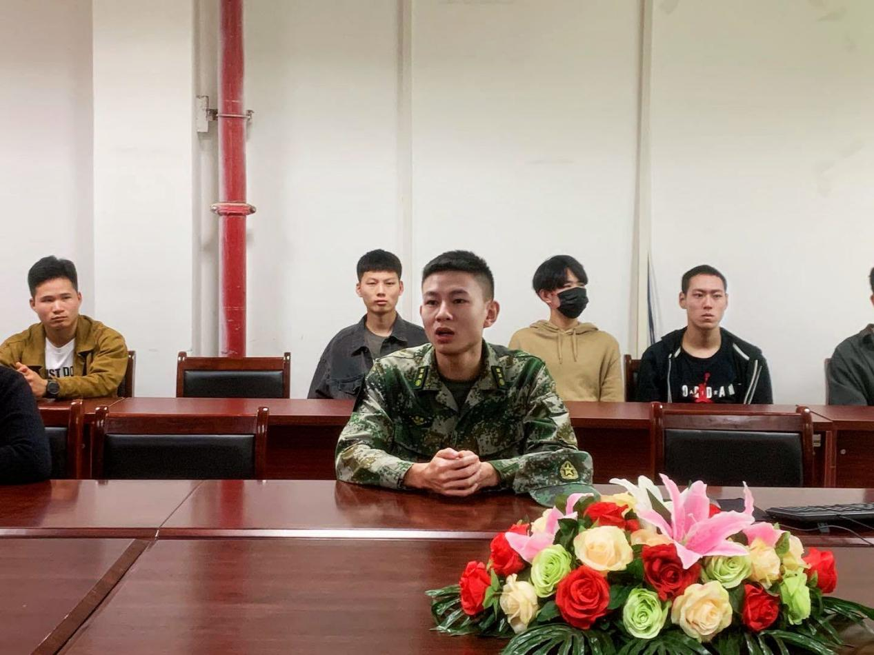 退役士兵陈晓鸣分享自己经历,勉励大家做好从“一名合格战士”到“一名优秀学生”的模式切换,希望大家发挥退伍军人余热,加入学院相关组织,继续为学校为学院贡献力量。