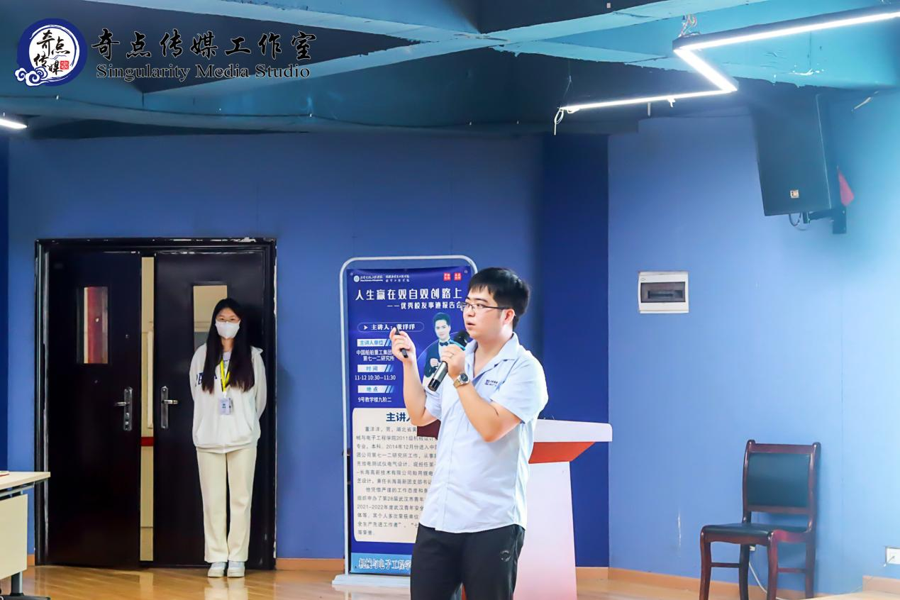 董洋洋曾是机械与电子工程学院2011级机械设计制造及其自动化的学生。在校期间,获得多项校级荣誉,还曾担任班级纪律委员和校文学社文秘部部长。毕业后,董洋洋被中国船舶重工集团公司第七一二研究所长海高新技术有限公司录用,现担任船用锂电池包生产线工艺设计长海高新技术有限公司团支书。看着新一届同学们的朝气蓬勃,董洋洋表示,很荣幸也很开心可以再回母校与学弟学妹们进行交流。
