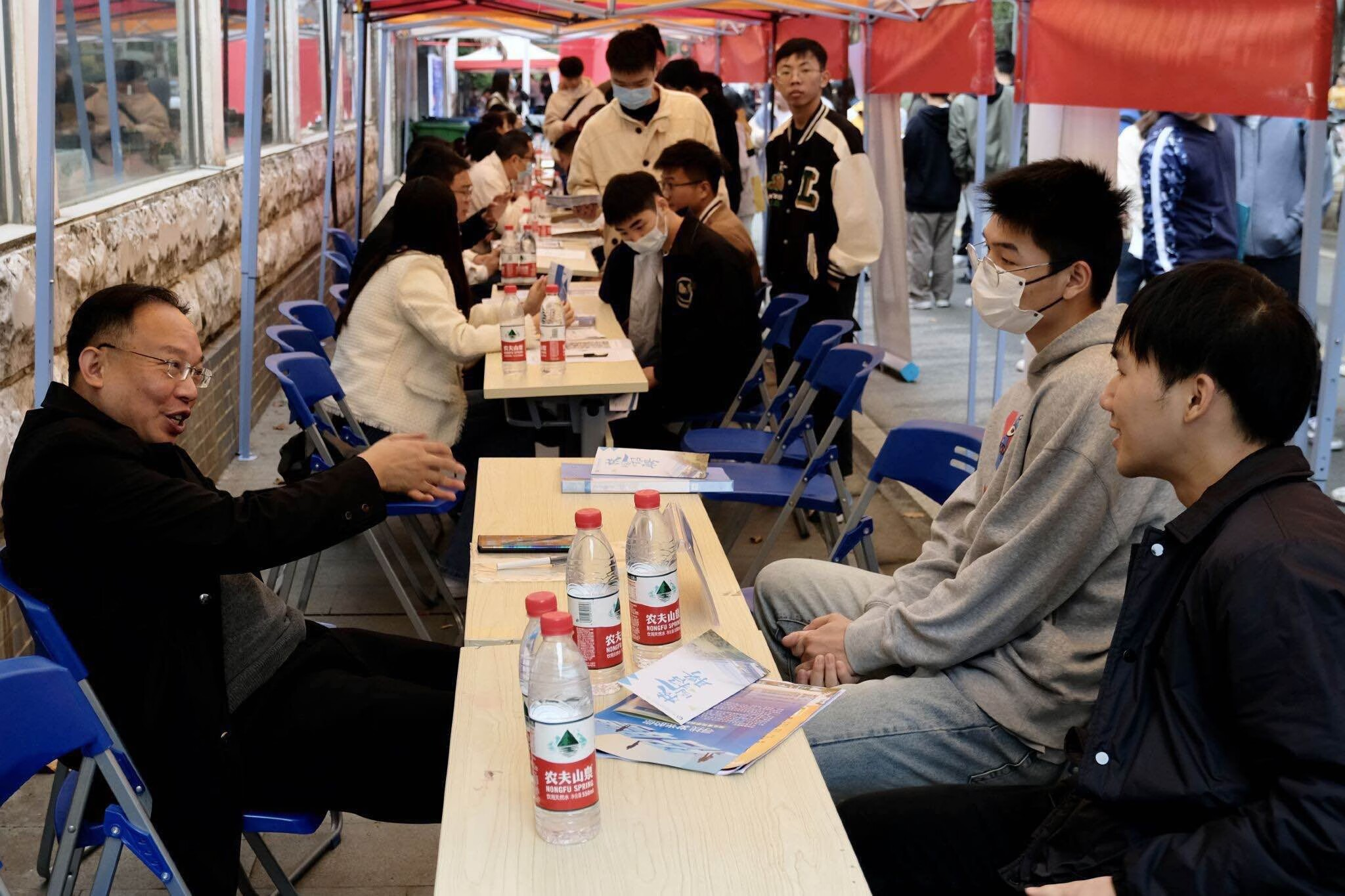 本网讯(通讯员 王霖、刘畅 摄影 胡博、周小林)10月28日上午,校园专场招聘月系列活动之机电学院·软件学院专场招聘会在机电学院·软件学院大楼前广场顺利举行。专场招聘会以“机不可失,软创未来”为主题,引进14家优质企业,覆盖机械工程师、软件工程师、游戏动画师、工程监理、质检员、设备工程师、安环工程师等专业相关的487个优质就业岗位。招生就业处处长张重阳、副处长谢红林深入招聘会现场指导工作,与企业招聘需求和招聘情况进行沟通交流。