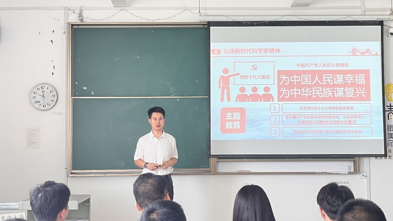 党课上,王老师以“踏歌远行,青春向党”为题,从“钱学森故事”讲到“科学家精神”,同时指出,钱老用其行动把“今后我将竭尽努力,使我的同胞能过上有尊严的幸福生活”的诺言变为现实,为我国“两弹一星”和国防科技事业及科学技术的发展做出了彪炳史册的历史贡献!并对广大毕业生提出希望和要求,希望同学们以实现中华民族伟大复兴为己任,修炼志气,磨炼骨气,历练底气,践行“请党放心、强国有我”的青春誓言和使命担当,不负时代,不负韶华,努力在党和人民需要的地方绽放绚丽的青春之花