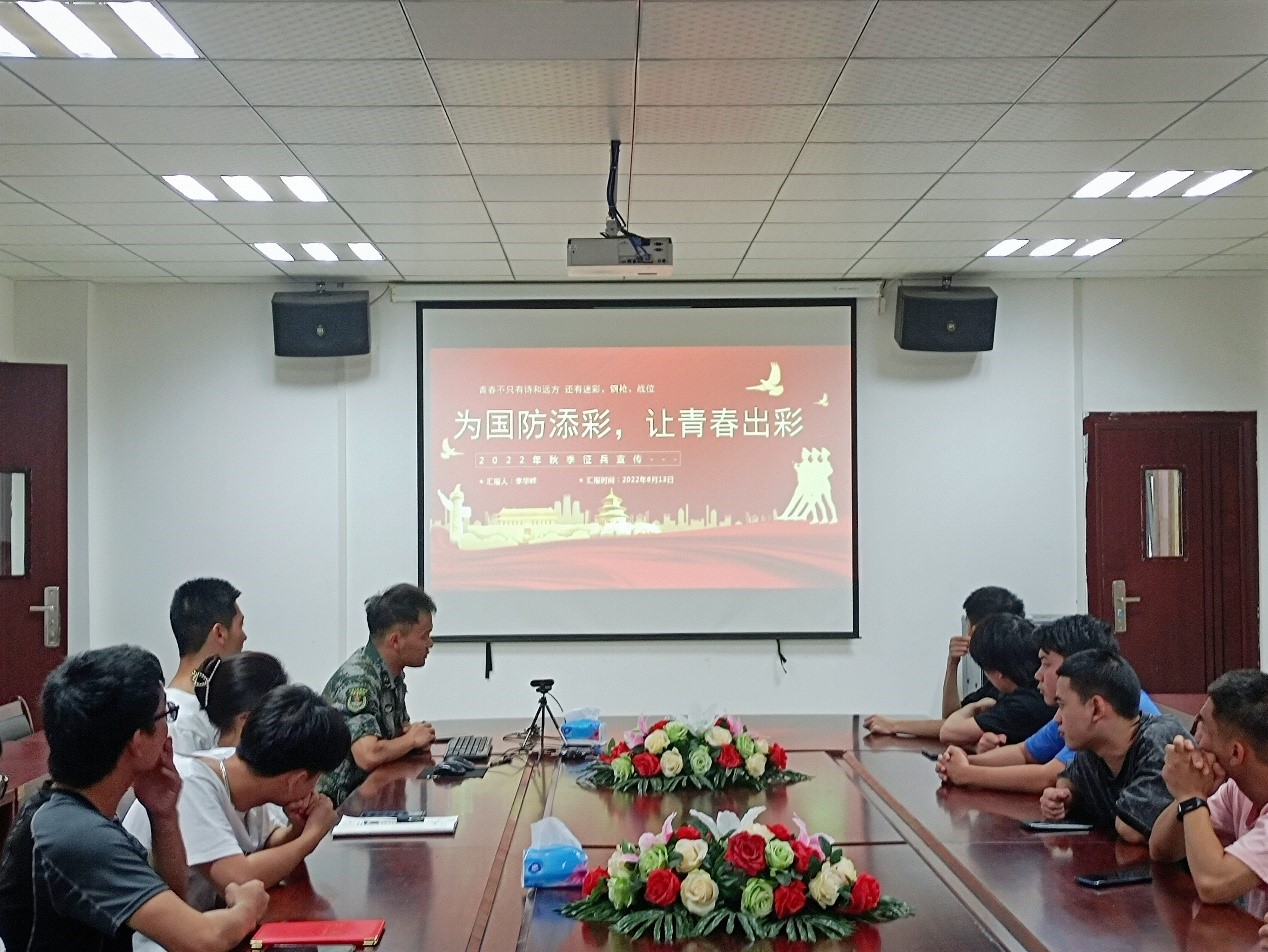 本网讯(通讯员 刘畅 摄影 程宏 郭逸轩)为动员我院大学生积极参军入伍,实现当代中国青年勇担时代使命,把个人的理想追求融入党和国家事业之中,为党、为祖国、为人民做出自己的一份贡献,2022年6月13日下午 ,我院在机电大楼207会议室召开毕业生应征入伍宣传教育会,我院毕业班辅导员胡璐璐、2022届毕业生、2020级专科及2019级本科意向入伍学生代表参加会议。此次应征入伍宣传教育会由我院退伍军人刘畅、李华峰主讲。