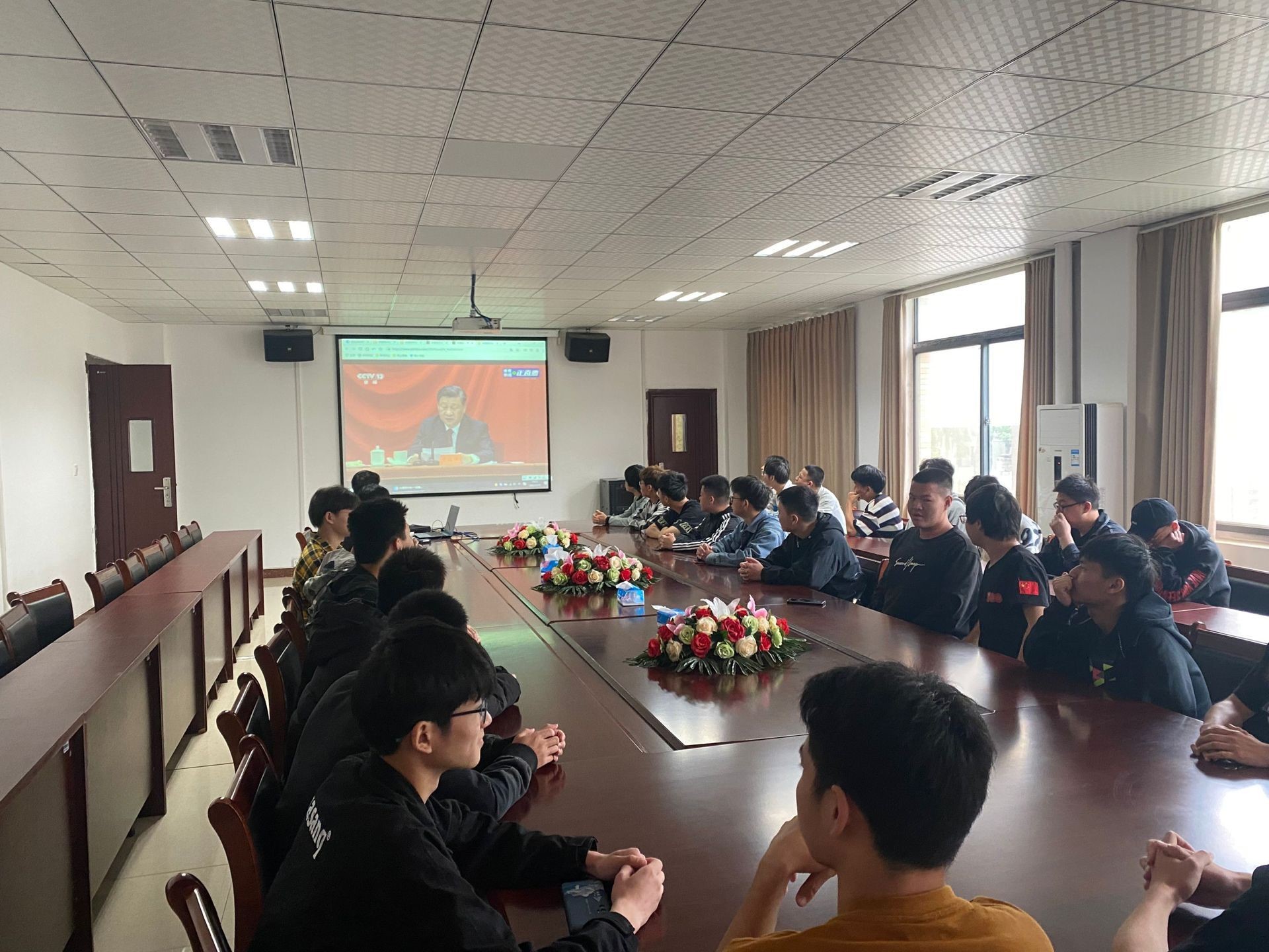 (本网讯:通讯员 李昱瑾)5月10日上午,庆祝中国共产主义青年团成立100周年大会在北京人民大会堂隆重举行。中共中央总书记、国家主席、中央军委主席习近平出席大会并发表重要讲话。我院组织青年学生干部在机电大楼207集中收听收看大会实况直播,聆听习近平总书记重要讲话。