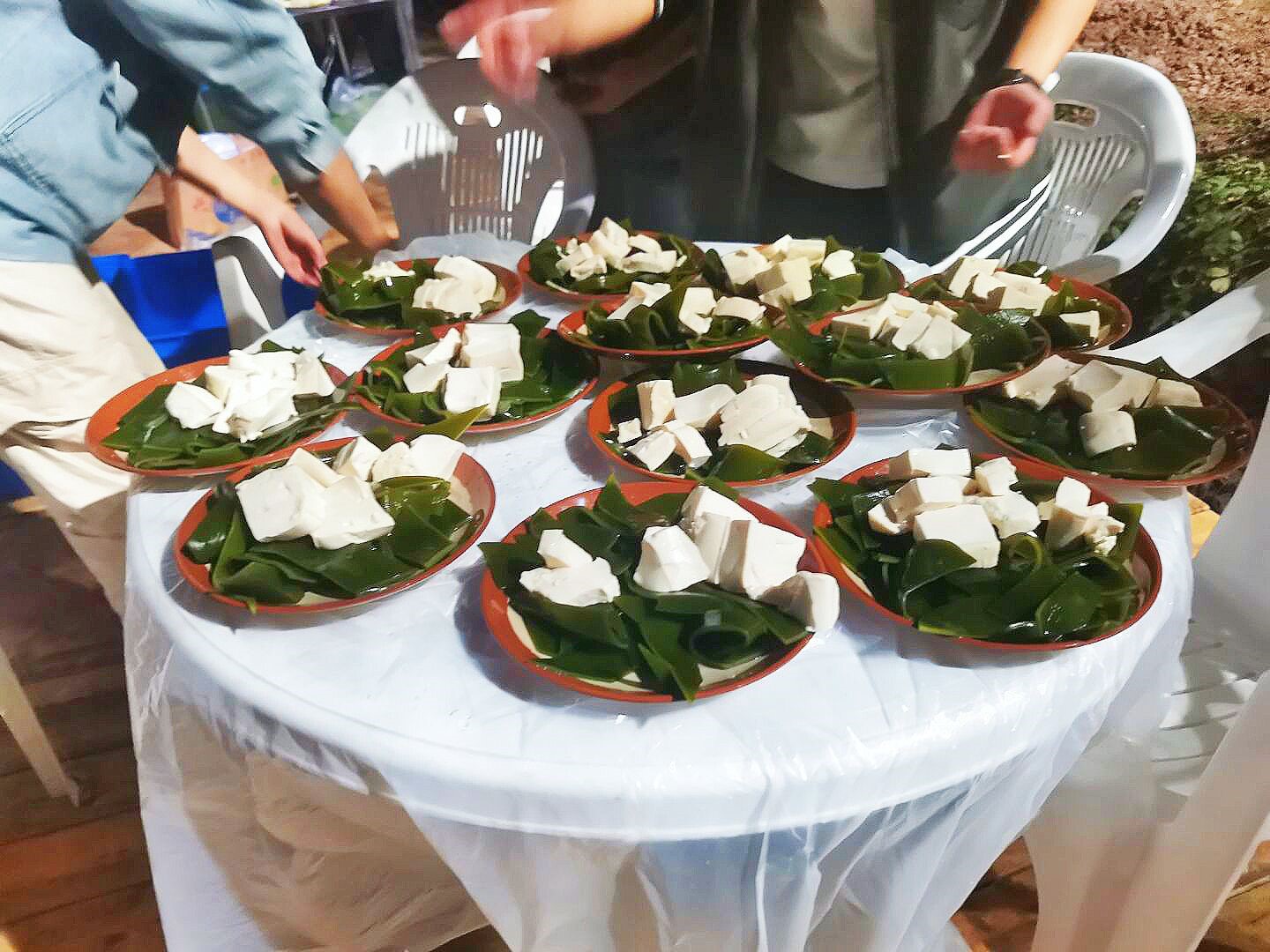 今天的晒秋广场、四号鱼池和往常有些不同,明亮的夜灯,餐桌上整齐地摆放各色蘸料和丰富的菜品,餐桌上支好了小火锅,浓稠的汤香冒着腾腾的白气,弥漫整个宴会现场,光是散发的香味就足以让人垂涎欲滴。老师和同学们有序的进入现场就坐,七八人围在一起,一边吃着热气腾腾的火锅,一边聊着校园趣事,使现场充满浓浓温情。