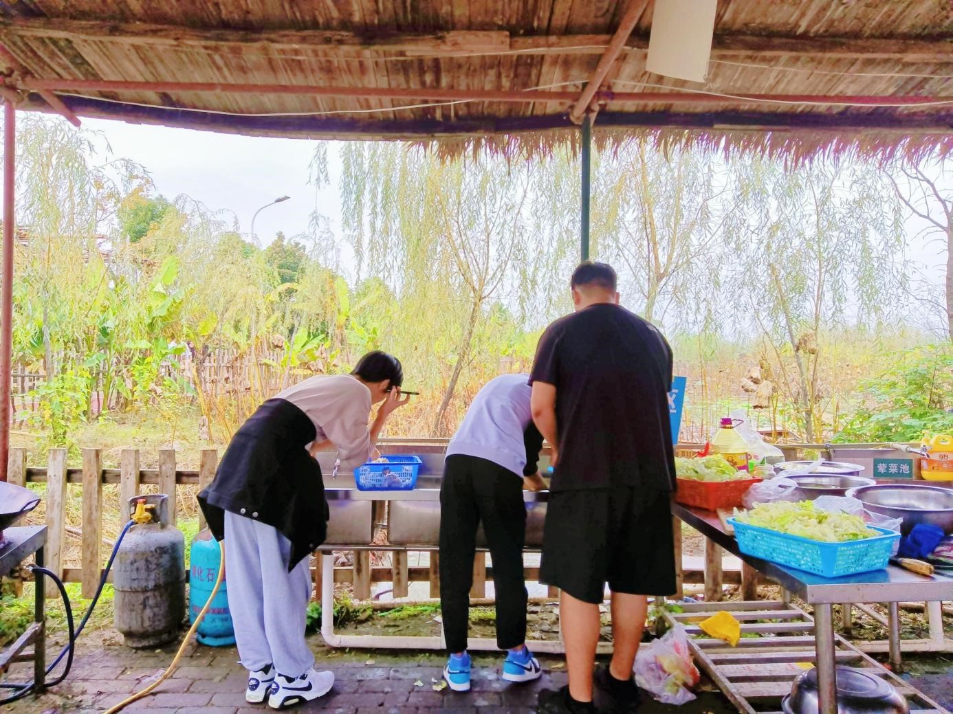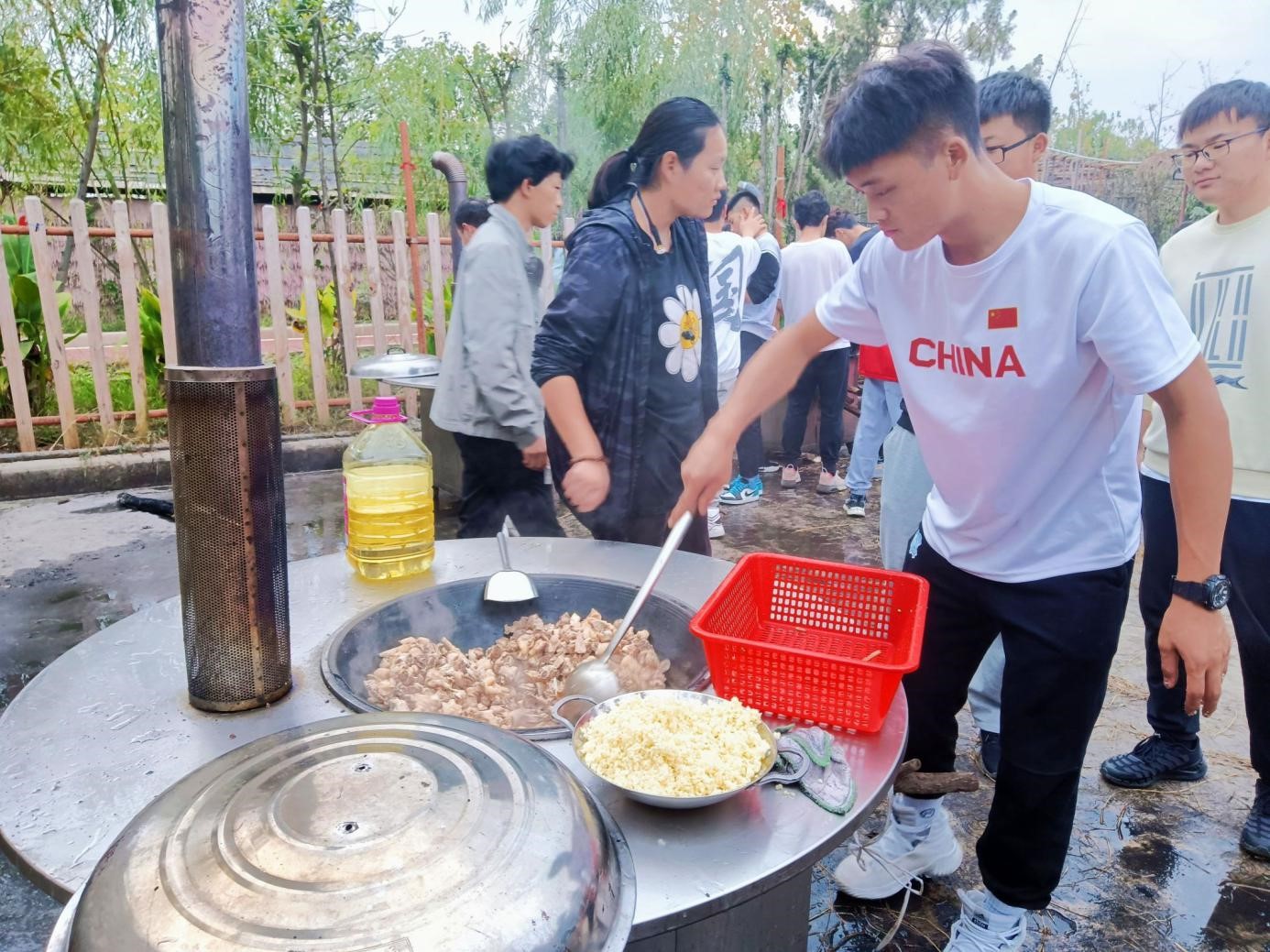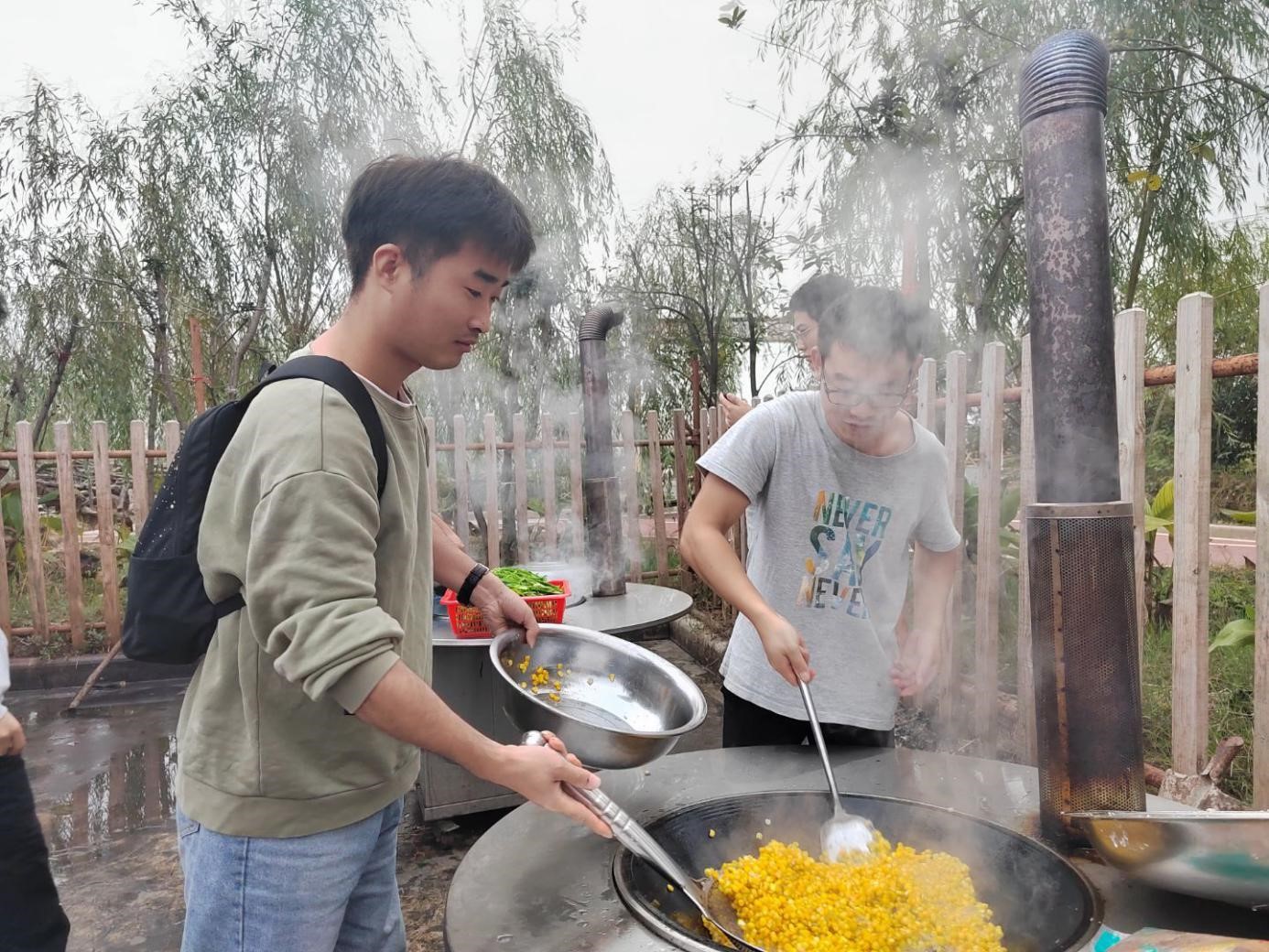 宴会开始前,老师与同学们各显身手,默契协作。洗菜切菜、烧柴点火……旖旎黄昏下,每道菜都充满着暖暖爱意,乒乒乓乓的灶厨声中也夹着师生们的欢声笑语。