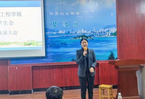 大会最后,机械与电子工程学院党总支副书记宋颖颖对新一年的工作进行展望,鼓励同学们在学生会要有所作为,积极主动的奋斗,为机电学院分团委学生会未来的发展奠定坚实的基础。