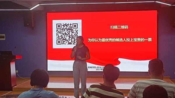本网讯(通讯员 邢镪 拍摄 李文哲 何威)为切实做好机械与电子工程学院青马工程实践服务中心(以下简称“青马中心”)新一届管理层选拔工作,9月2日晚,我院青马中心在建筑与工程学院307报告厅举行竞选答辩会。大会依据网络集中投票结果,从13位竞选人中确定最终名单。大会特别邀请我院党总支副书记宋颖颖,组织员霍丹参会。