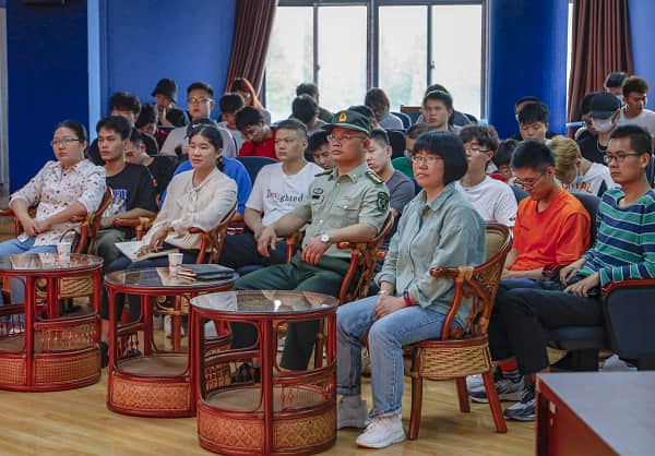 校武装部部长陶栋在认真聆听四位退役军人学子的军旅故事后,对他们的收获成长表示肯定和赞许,并作了题为《奋斗的青春最美丽》主题宣讲。陶部长从“参军入伍的好处、征兵相关政策、应征入伍条件及流程、大学生参军特别优惠政策”四个方面,对大学生入伍政策进行解读,并希望广大机电学子能踊跃入伍,锻炼自己,锤炼意志,投身国防,报效祖国。