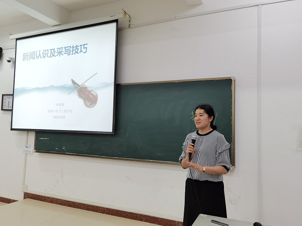 图为机电学院党总支副书记宋颖颖正在进行新闻技能培训