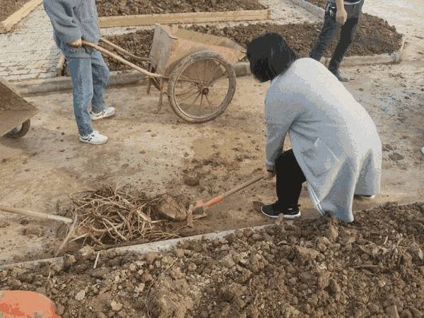 一到劳动区域,同学们就纷纷领取到劳动工具。之后,霍老师耐心地向同学们传授自己的劳动经验以及劳动时需注意的安全问题,“安全第一”是她口中一直重复的字眼。讲解完毕,穿着朴素的霍老师身体力行,率先铲起第一铲土,同学们也立刻进入劳动状态,展现出“不怕苦、不怕脏、不怕事多”的“三不精神”。同学们在霍老师的指导下分组分工、各司其职、相互配合。最终,经过一个小时的“战斗”,“蔬菜园转土”的工作圆满完成。