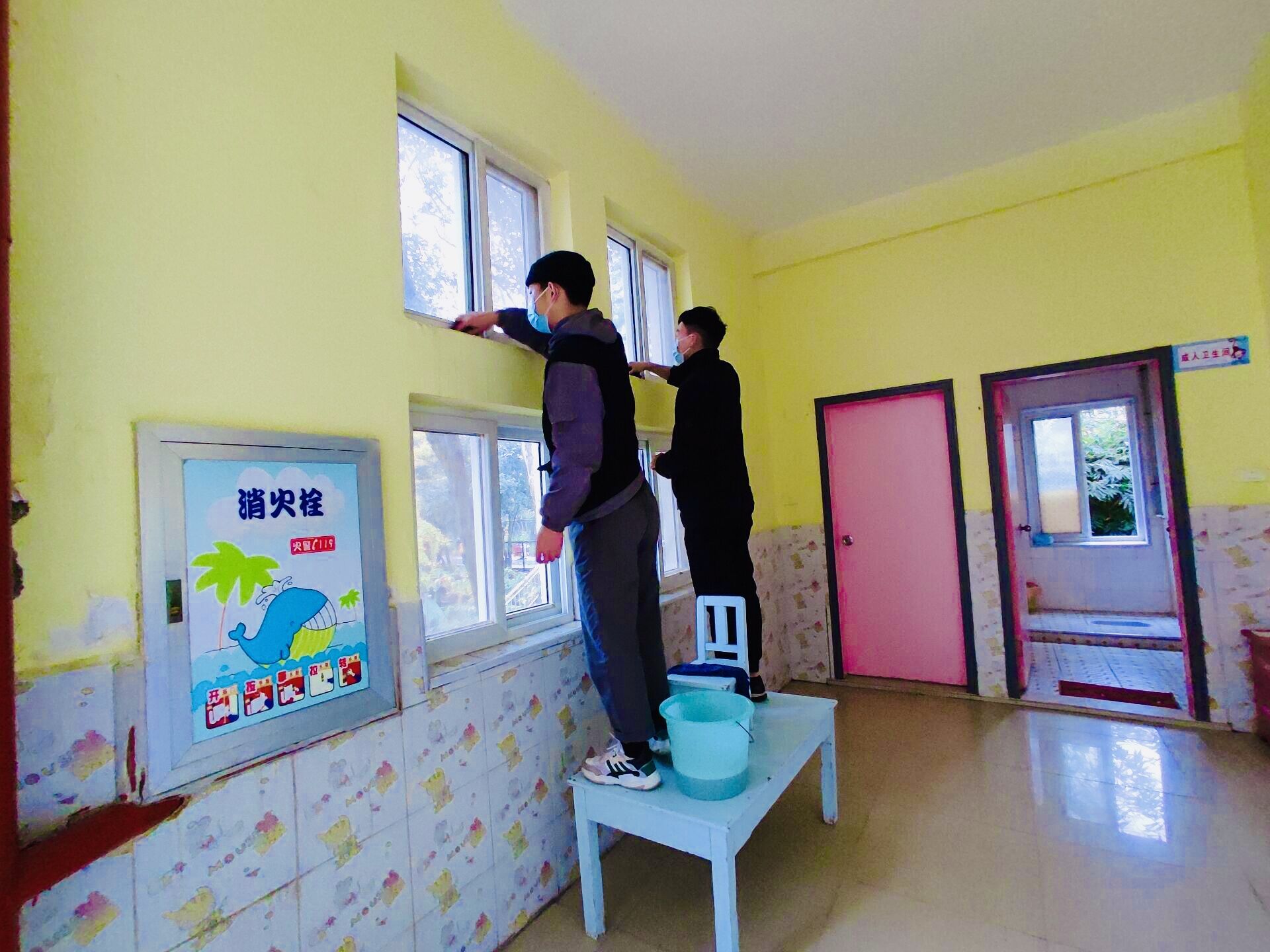在幼儿园老师的安排下,学生们分区域对园区室内外进行了大扫除。机电学子干脆利落的做事风格和一丝不苟的工作态度,赢得了幼儿园老师的好评,也得到了小朋友们的感谢。
