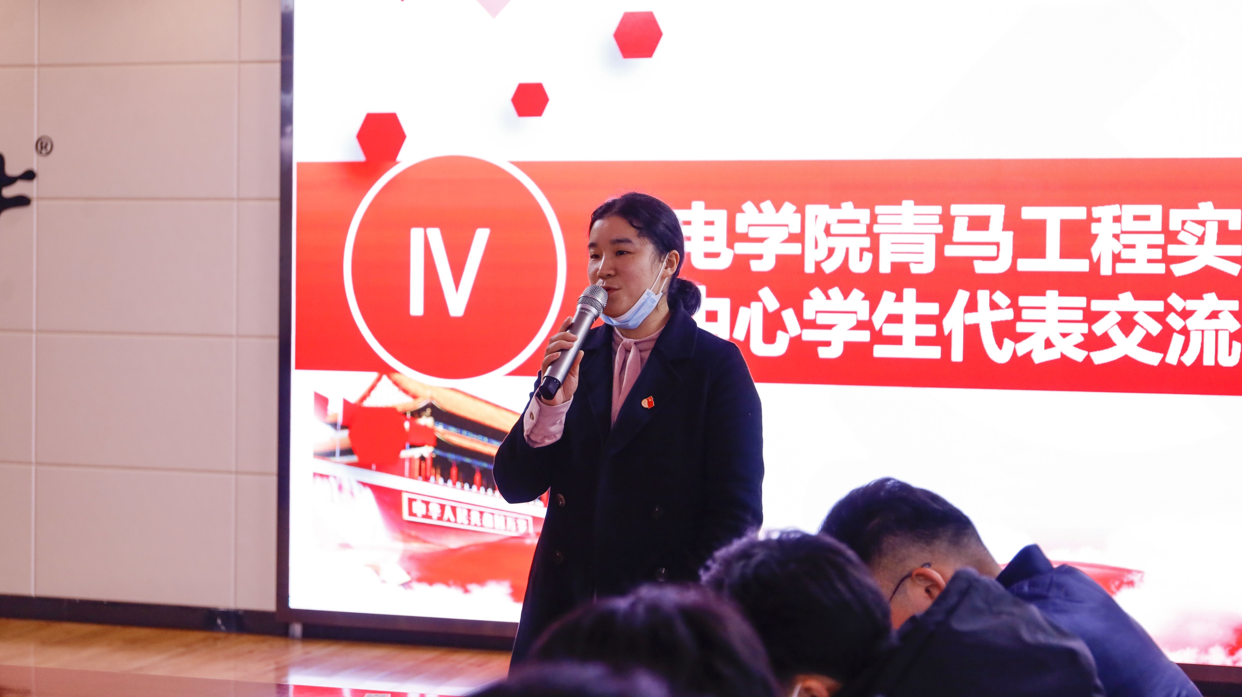 图为机电学院学生代表杨兆军交流发言