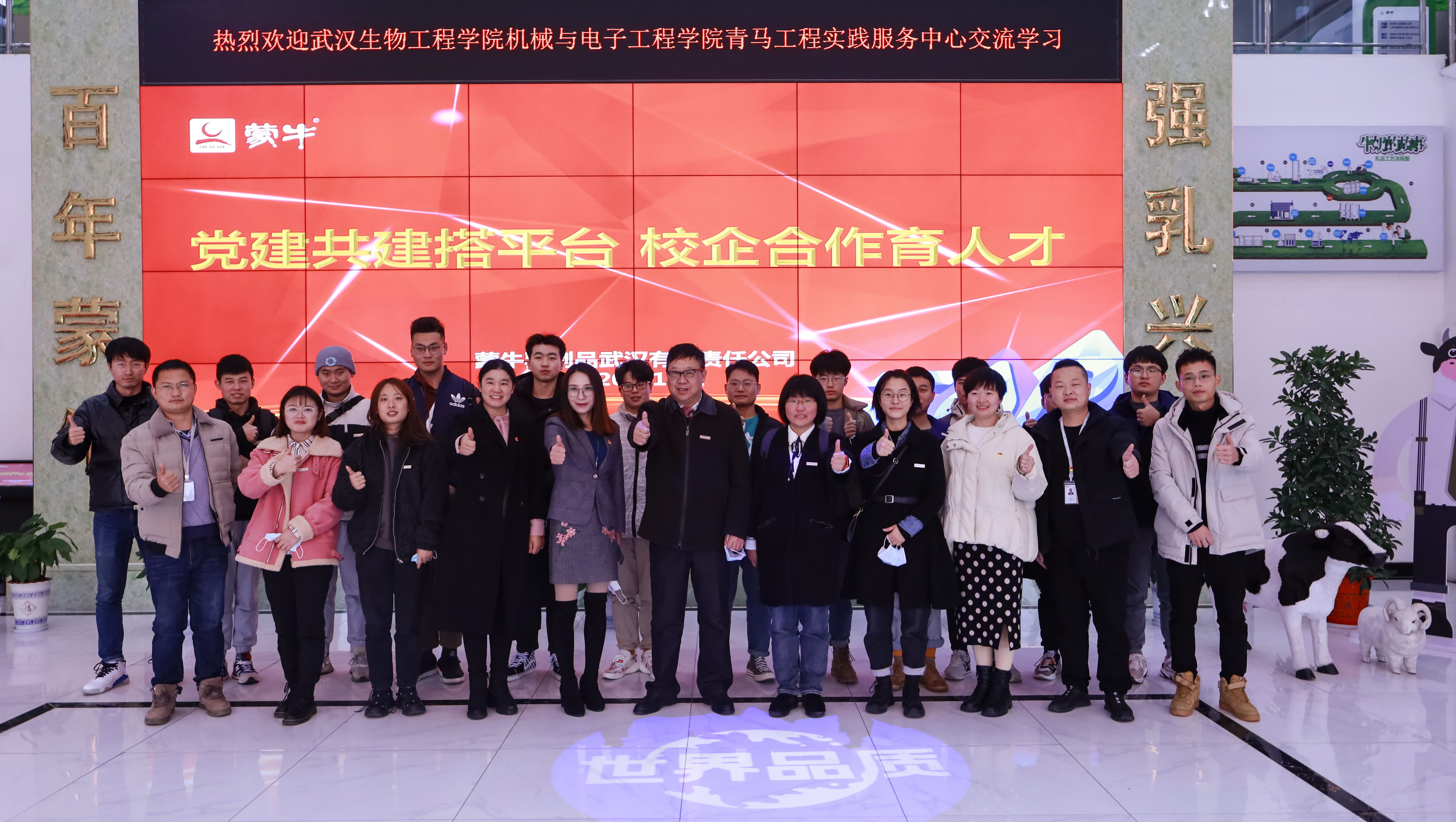 图为机械与电子工程学院党支部师生与武汉蒙牛乳业党支部人员合影留念