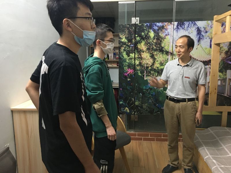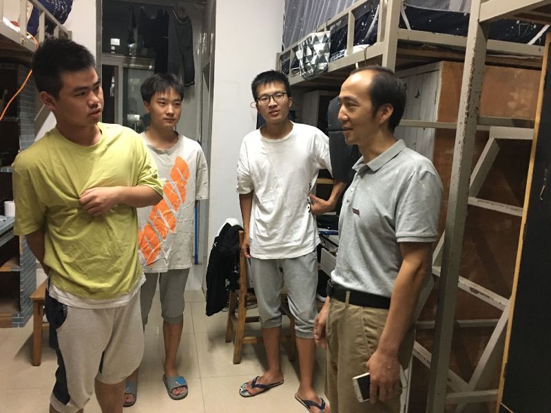 一行人深入西园、松园、北十宿舍,孔德文校长和新生亲切交流,询问学生家住哪里,谁送来报道的,对学校感觉怎么样,有什么生活需求,鼓励学生尽快适应学校生活,开启大学模式,扎实学好专业知识。