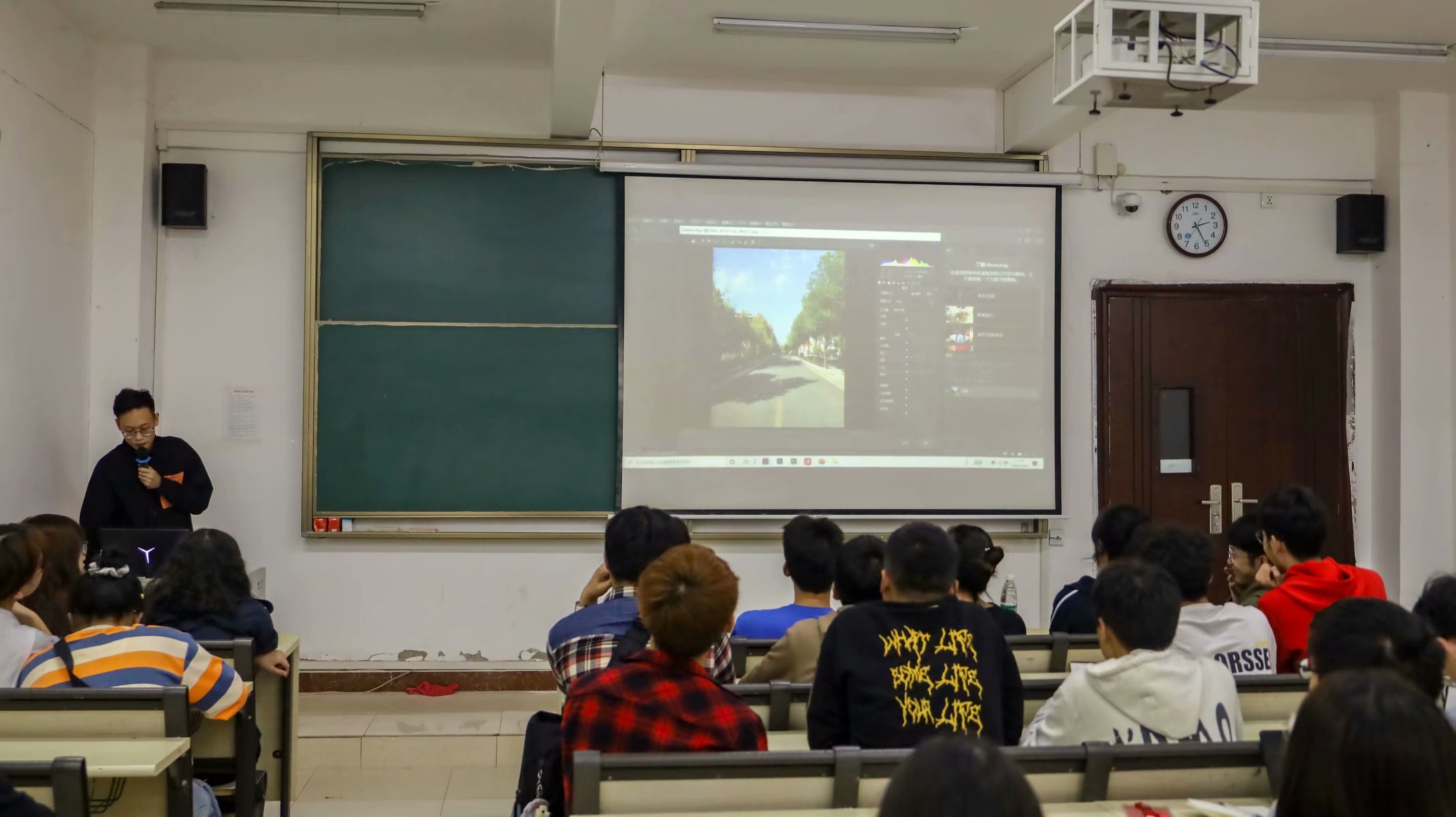 会议伊始,主持人进行了简要讲话,然后,周良维学长进行了拍照摄像的专业基本知识以及各种拍摄方法与拍摄技巧的讲解,与我们分享自己拍摄的经验。陈昕煜学长与陶雨生学长分别进行了Ps软件与Pr软件的详细讲解与实际应用,还有一些制作的方法与自己的心得体会。最后,张鑫老师给同学们进行了指导讲话与会议总结,鼓励同学们要积极向上,继续努力。