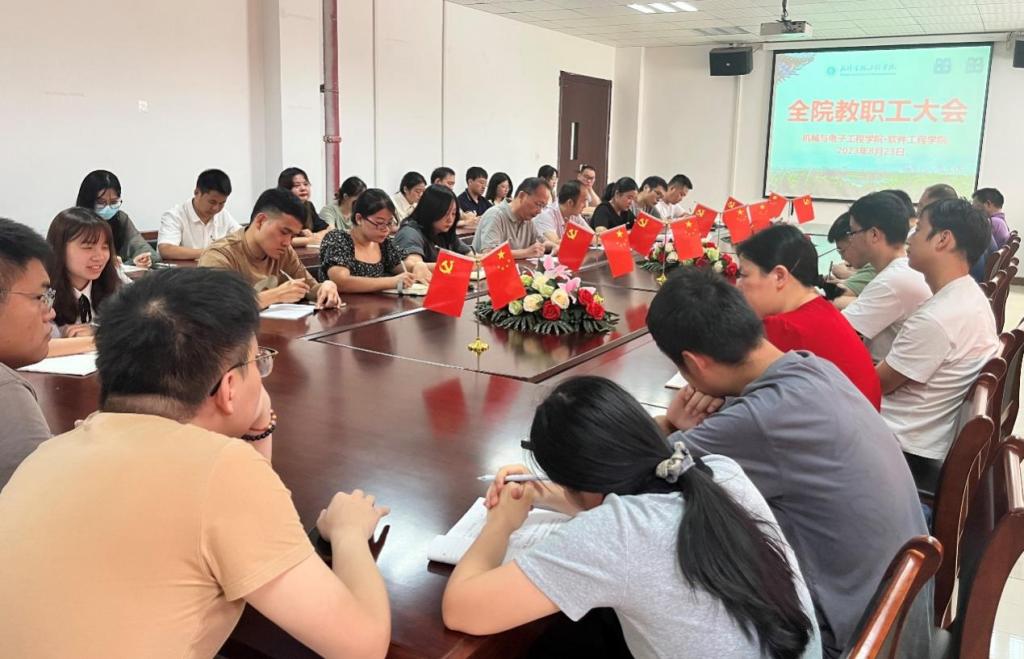学院党总支常务副书记宋颖颖、副院长冉亮分别就学院暑期相关工作、系列丛书编写、“揭榜制”项目申报、招生、就业、校友、学生安全、教学工作要求、师德师风、实验室建设和创新创业大赛等方面工作进行了介绍说明。