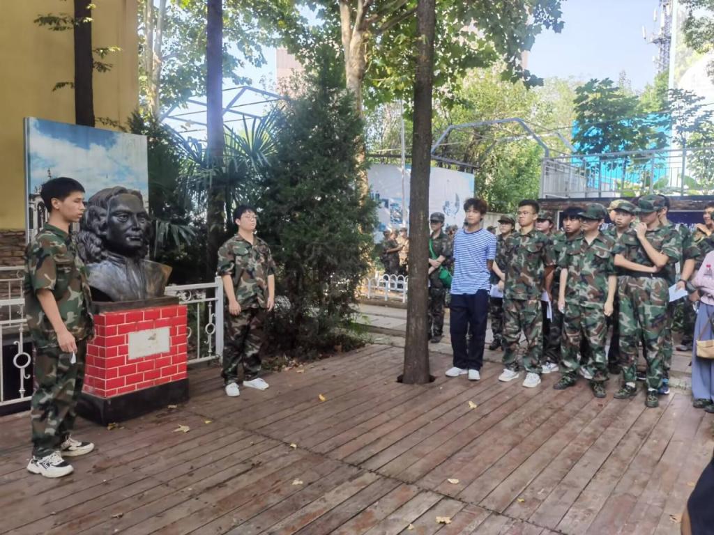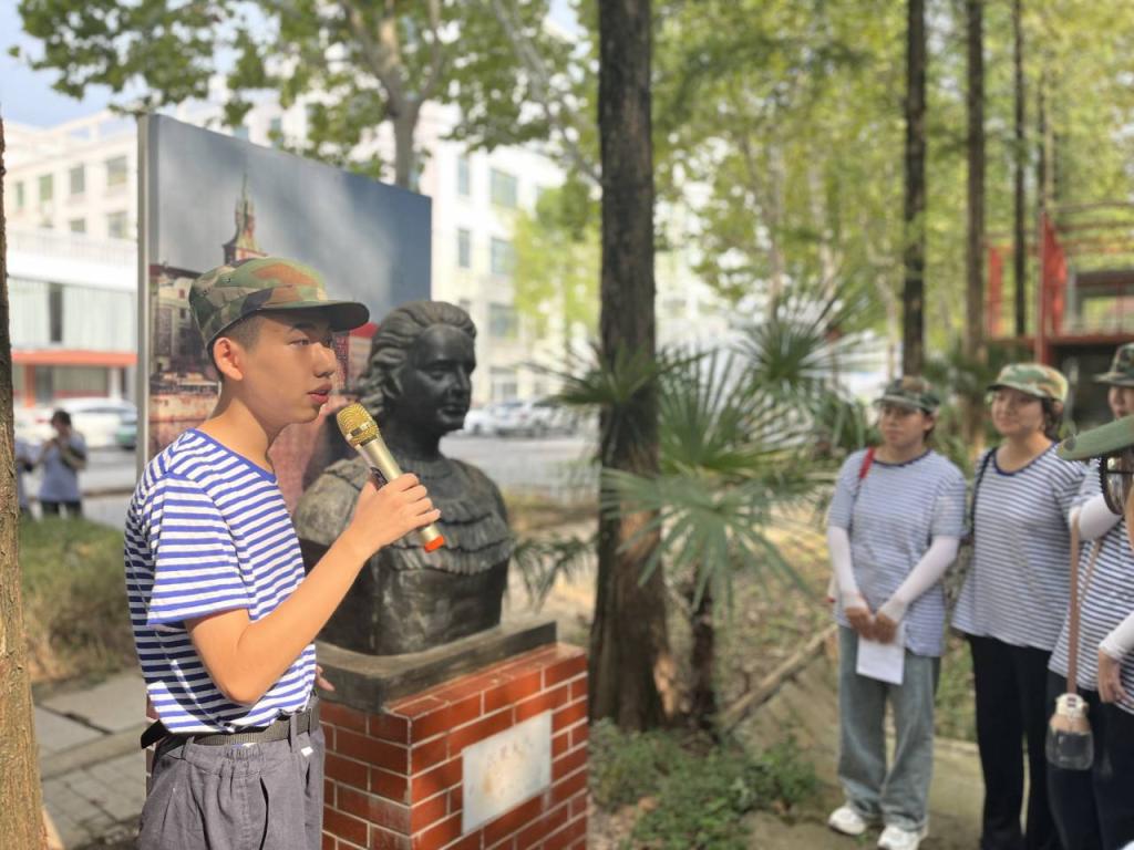 据了解,机电学院.软件学院的新生军训地点以桐荫路为主,位于学校的科技文化长廊旁边,这42名新生因腰伤、腿伤等自身身体的原因,无法参加军训,便在军训连队旁(科技文化长廊)进行观演。几天来,他们深受科技文化长廊21位科学家事迹精神的鼓舞,在学院党总支的号召下,他们主动加入到讲解队伍中来,把科学家精神传递给每一位新生。