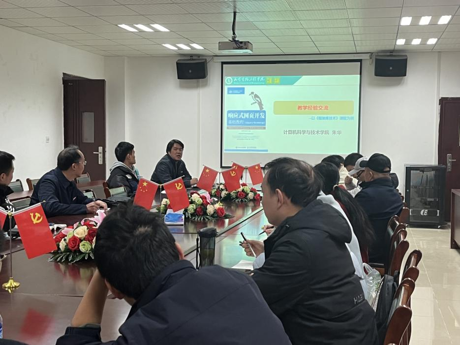 本网讯(通讯员 熊小倩)为深化课程改革,优化教学方法,提高教学质量,积极打造高质高效课堂,全面促进教师课堂教学能力提升,11月29日下午,机械与电子工程学院·软件工程学院在16号楼207会议室开展课堂教学方法培训会。此次培训会特邀请计算机科学与技术学院优秀教师朱华作分享汇报。学院院长助理陈建雄主持会议,全院专任教师参加本次培训会。