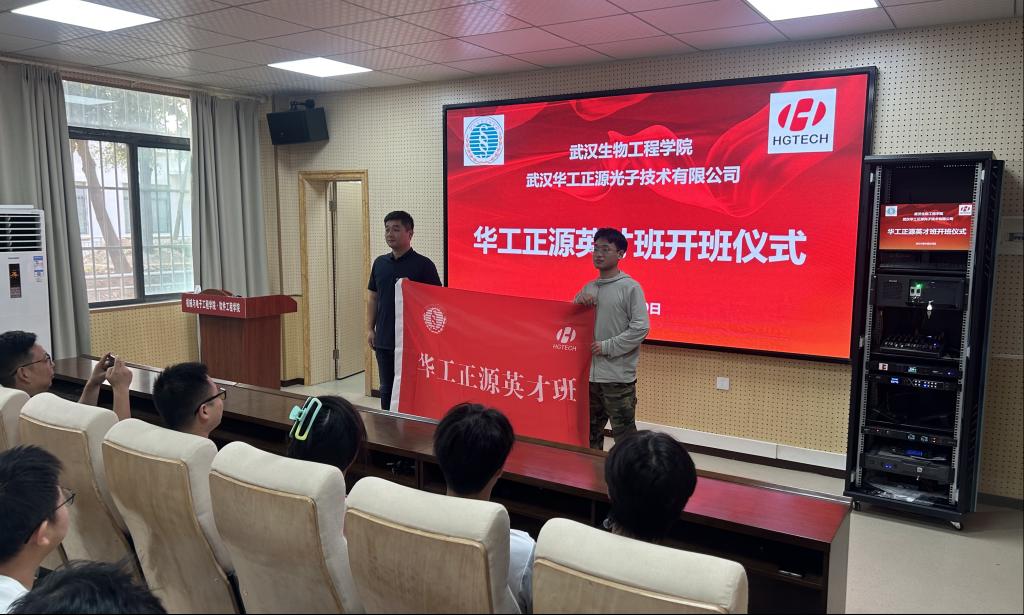 本网讯(通讯员 尹勇)9月29日上午,机械与电子工程学院·软件工程学院与武汉华工正源光子技术有限公司合作的“华工正源英才班”开班仪式在16#121报告厅举行。武汉华工正源光子技术有限公司人力资源部副总监赵志勇、高级经理张涛、校企主管苟超越,机电·软件学院党总支常务副书记宋颖颖、机电教研室主任李黎、毕业班辅导员尹勇以及全体华工正源英才班学生参加开班仪式。开班仪式由机电·软件学院院长助理徐楚杰主持。