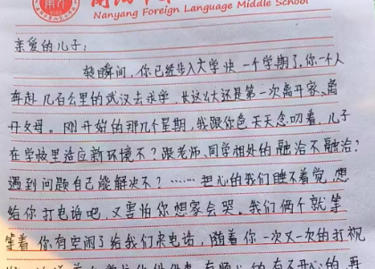 2025级新生于鑫给家长的手写信及家长回信(辅导员:何君先)
