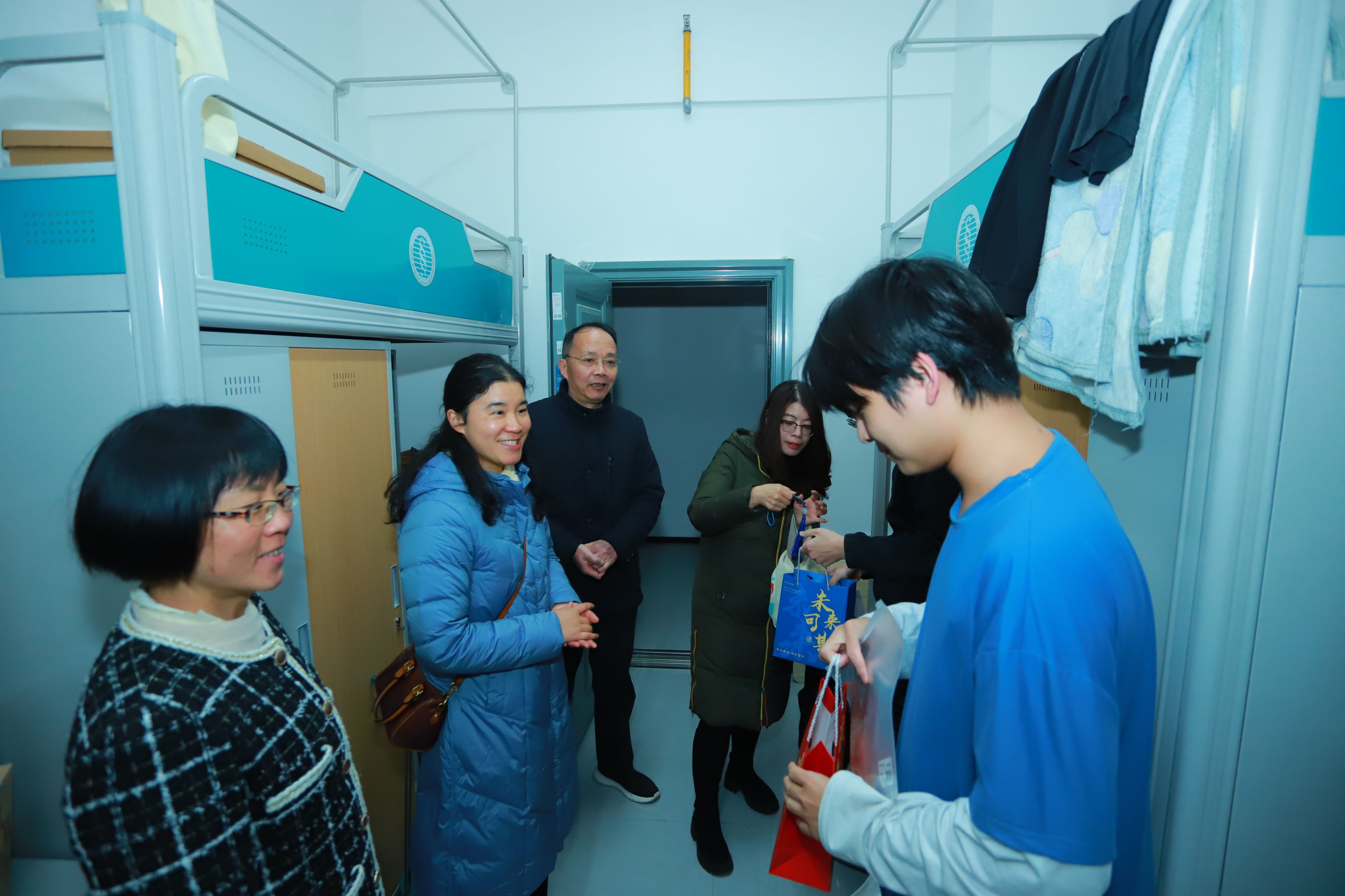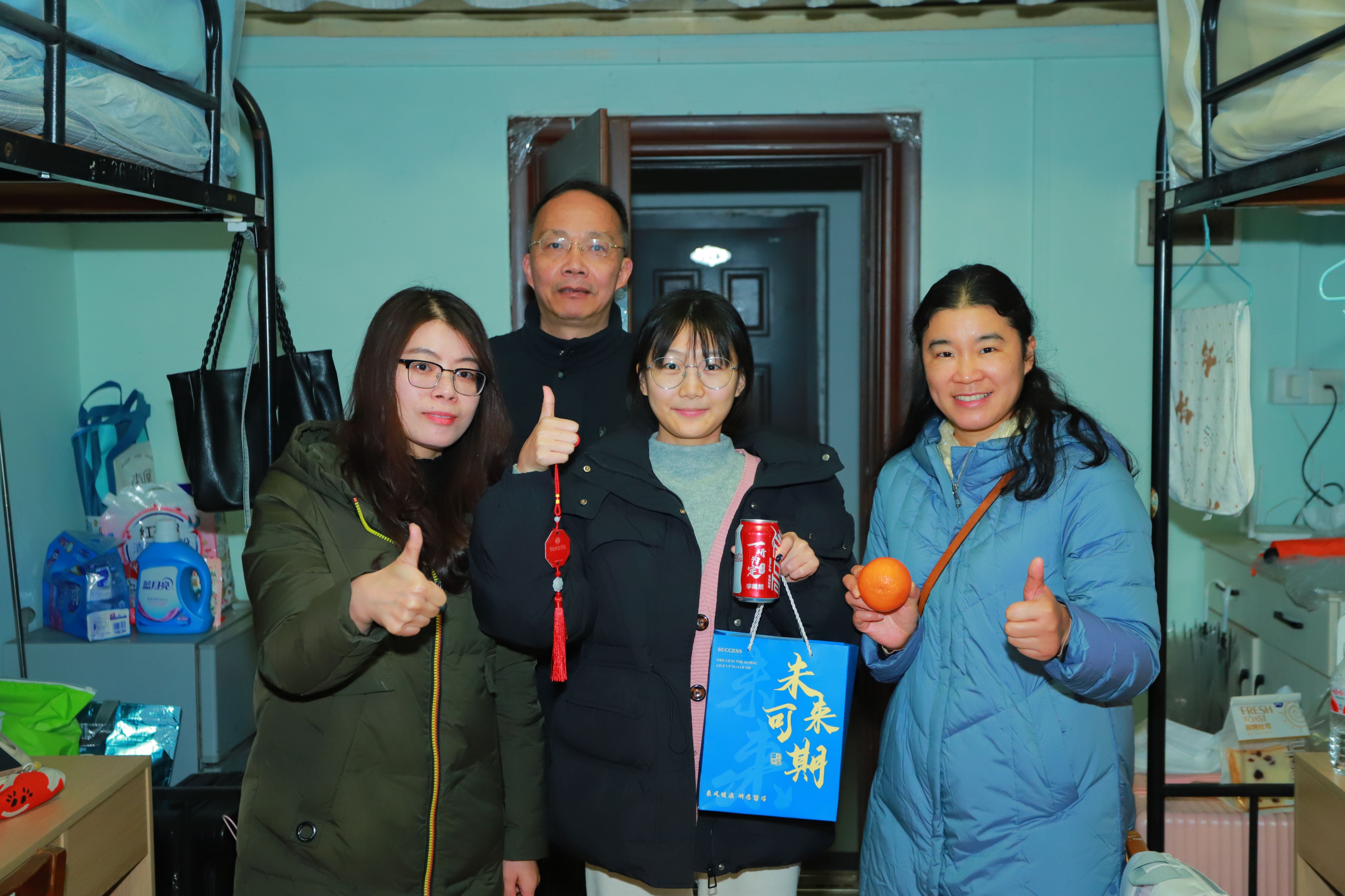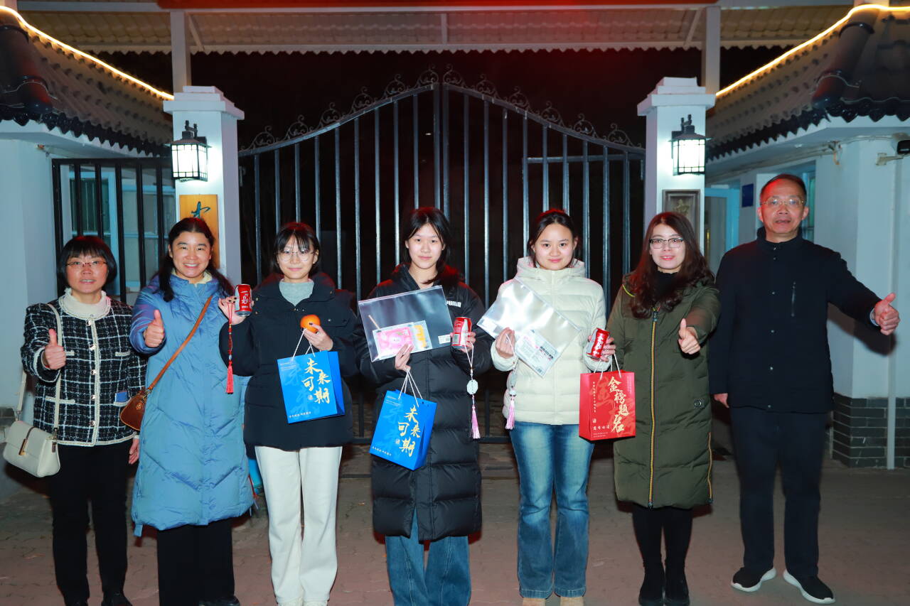 本网讯(通讯员 霍丹 周凯婕 摄影 李吉龙 安昊驰)3D打印的“旗开得胜”励志许愿牌,优秀校友企业生产的“心想事成”龙涎柑,专属定制的“梦想成真”可乐罐,“未来可期”励志文具套装,还有学弟学妹录制的的“研途同行”暖心视频……考研冲刺关头,这份精心筹备的加油包,是智能制造学院送给2026届考研学子的深情祝福和暖心支撑。12月15日晚,智能制造学院精心组织“智造梦想·研途相伴”考研暖心助航活动,学院院长张予川、党总支书记宋颖颖、党总支副书记周婉婷带队,与毕业班辅导员同行,深入学生宿舍将这份关怀送到考研学子手中。