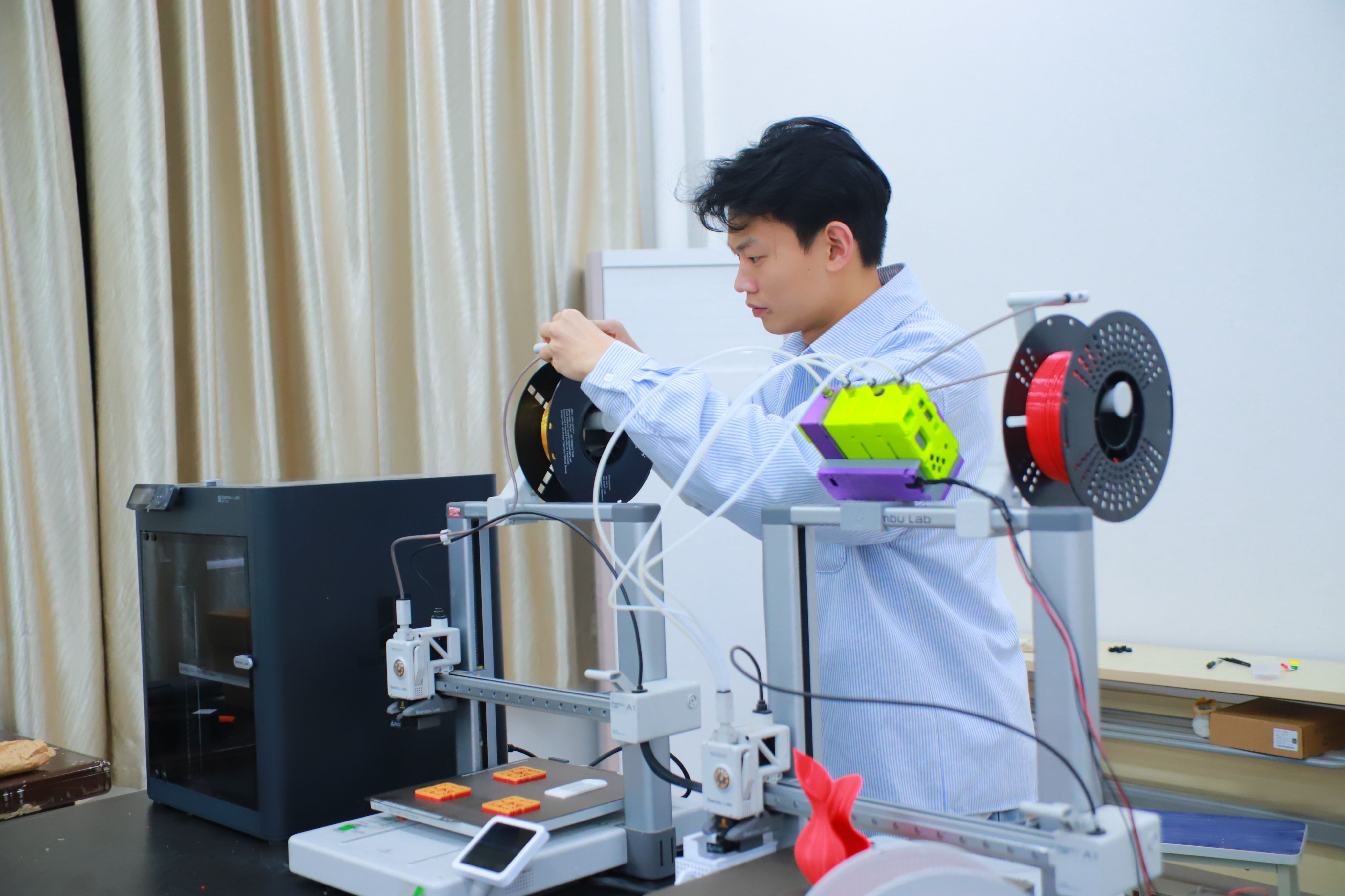 学院科技创新工作室成员们为考研学子打印“旗开得胜”许愿牌