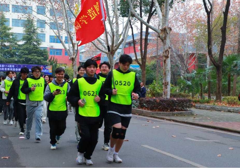 赛道上,选手们步伐坚定,呼吸沉稳有力,冬日的凛冽寒风成为他们挑战自我的背景。竞速跑选手一马当先,全力冲刺;欢乐跑队伍与教职工队伍则稳步前行,与身边同伴互相鼓劲。沿途的师生志愿者们高举标语、呐喊助威,每一声充满力量的加油都化作选手们脚下的动力。