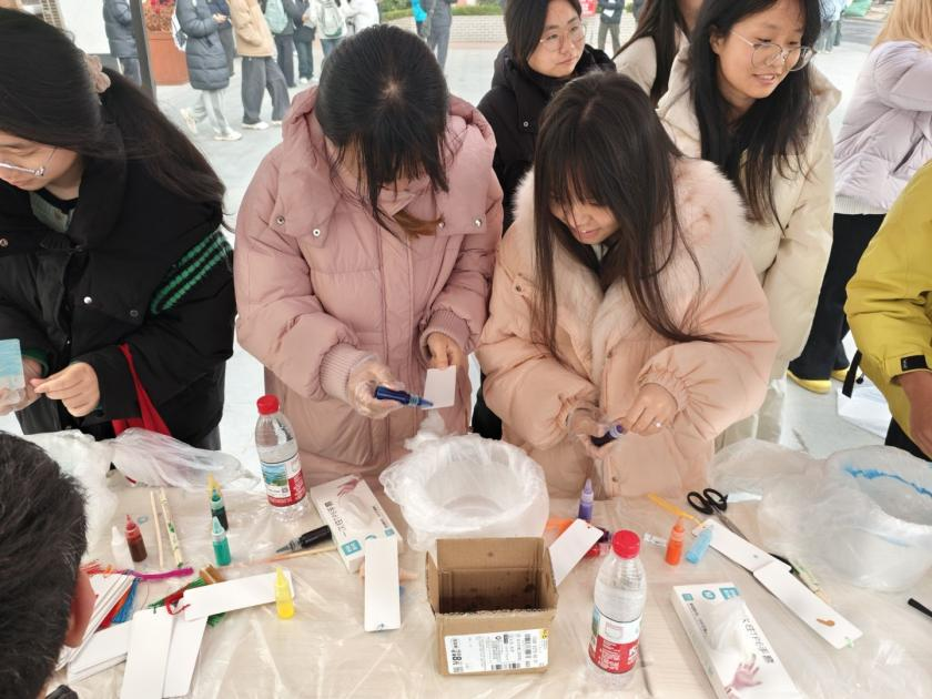 本网讯(通讯员 陈迪恒 王正阳 摄影 张源娜 万美俊)12月18日上午,我院“心乐园”心理辅导站在16号教学楼前成功举办了以“漆韵流彩,指尖疗愈”为主题的漆韵书签DIY情绪治愈活动。本次活动将历史悠久的传统漆艺与现代心理疗愈理念创新结合,旨在引导同学们在专注创作中释放压力、安放情绪,体验了一场别具一格的心灵滋养之旅。
